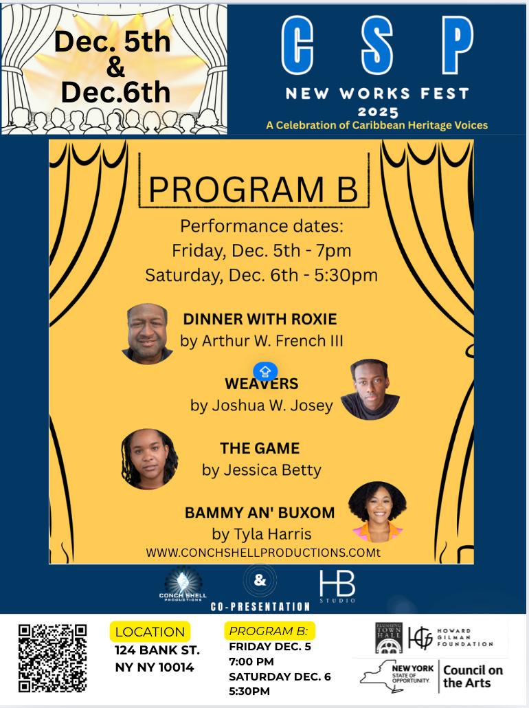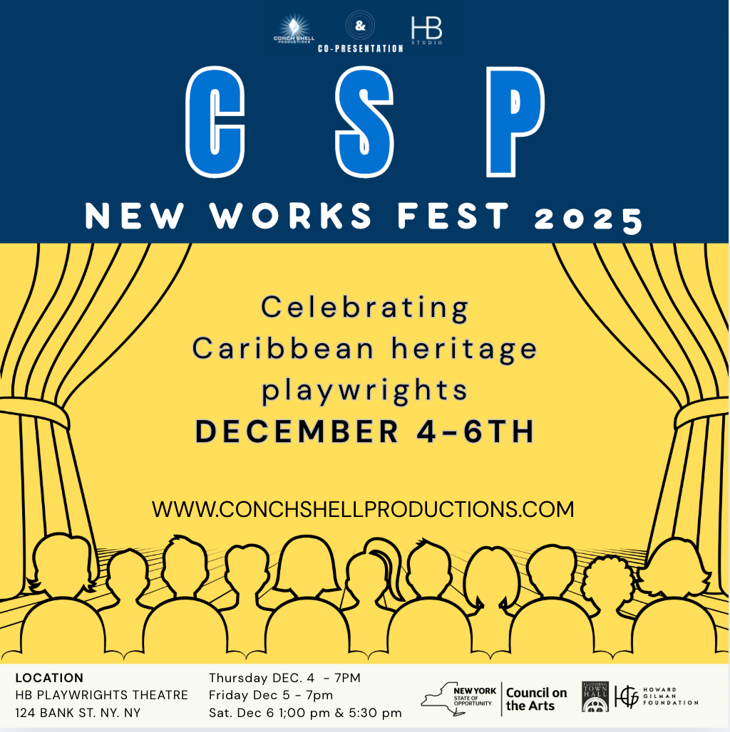 #CSPNewWorksFest #CaribbeanTheatre #ConchShellProductions #TheatreForChange #NYCArts #CaribbeanStories #SupportTheArts #HBStudio